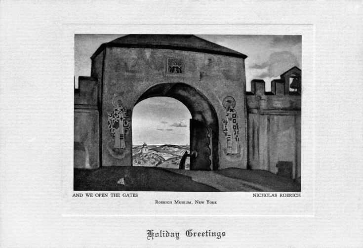 Открытка с изображением картины Н. К. Рериха «И Мы открываем врата», изданная Музеем Рериха в Нью-Йорке