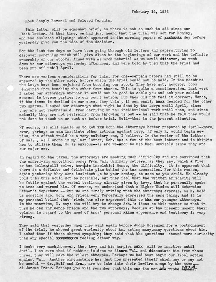 Письмо Ф. Грант Е. И. и Н. К. Рерихам от 14 февраля 1936 г.