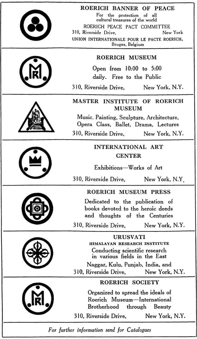 Мы избрали Вас не только пожизненным членом [Рериховского Общества], но и Почетным советником [института «Урусвати»][884]. Тем самым мы хотим сказать, что не только дорожим Вашим постоянным присутствием, но и рассматриваем Ваши советы как ближайшую помощь мудрого друга. Вам известно, как много рифов должен обогнуть Корабль Культуры и как все темные силы особенно стараются навредить всему, что делается во имя Света и Культуры. Ярость темных сил лишь показывает, что они понимают значение расширения нашей культурной деятельности.