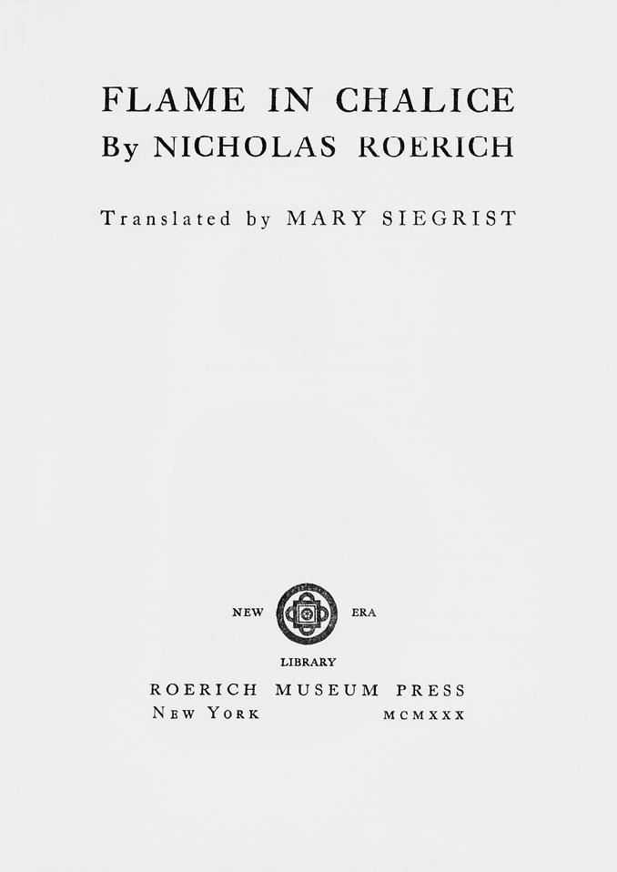 Титульный лист книги поэтических произведений Н. К. Рериха «Flame in Chalice» («Пламя в Чаше») – переведенного на английский язык сборника «Цветы Мории»