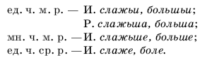Следовательно, в этимологическом плане слаще (< слажьше) относится к слаже так же, как больше к боле.