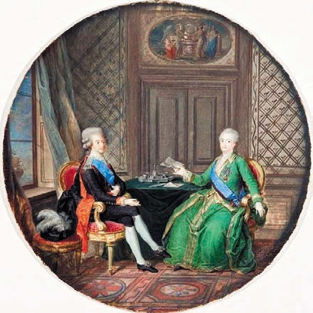 Переговоры Екатерины II и шведского короля Густава III. Миниатюра. Национальный музей, Стокгольм
