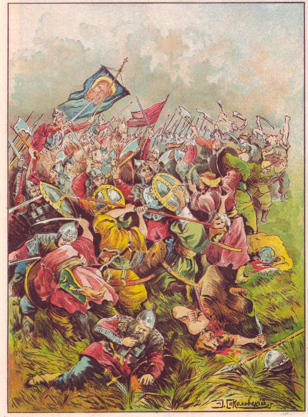 Между тем татары приближались к нему. Скоро началась битва между ними и княжескими войсками. Перебили татары русских, великого князя тоже убили и отрубили ему голову. Так покорили татары всю русскую землю, город за городом. Добрались и до Киева, самого древнего и славного города Руси, и его разорили весь.