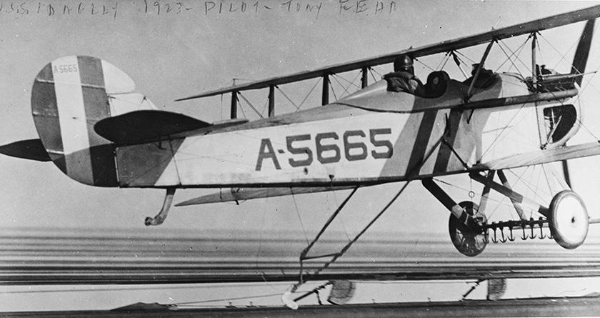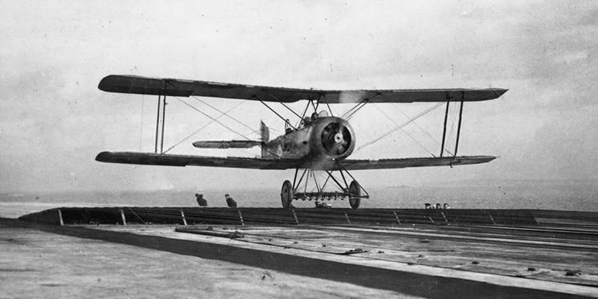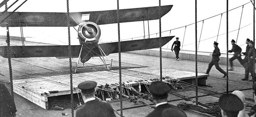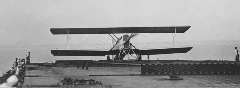 День рождения палубной авиаци – 18 января 1911 года, гавань Сан-Франциско. Авиатор Юджин Эли на аэроплане «Модель D» Глена Кёртиса совершает первую в истории посадку летательного аппарата на корабль (броненосный крейсер ACR-4 «Пенсильвания»). Что самое поразительное, разработавшему посадочные приспособления инженеру Хью Робинсону удалось с первой попытки угадать принципиальную схему, применяемую на авианесущих кораблях и по сей день. Она включала аэрофинишёры с поперечными тросами без жёсткого крепления, посадочный гак и даже аварийный барьер, роль которого играл кусок брезента, закреплённый в конце посадочной платформы.