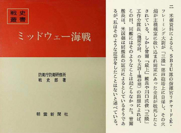 Что меня больше всего смущало в «разоблачении» Паршалла и Талли, так это отсутствие японской версии этого эпизода в качестве ещё одного аргумента. Хотя она вполне себе присутствует в посвящённом сражению при Мидуэе 43-м томе «Сэнси Сосё», японской сугубо официальной «Истории войны». И это при том, что «Сломанный меч» базируется именно на этой работе, в которой можно прочесть следующее: