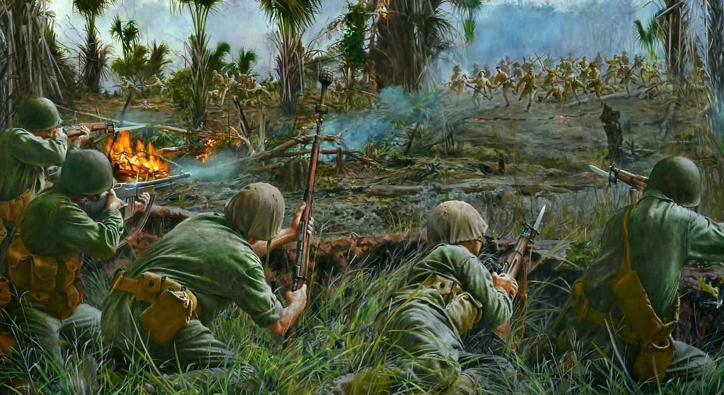 На самом деле японская атака мало походила на бессмысленную беготню толпой под пулемётным огнём, какой она изображена на этой картинке или в моём любимом сериале «Пацифик».