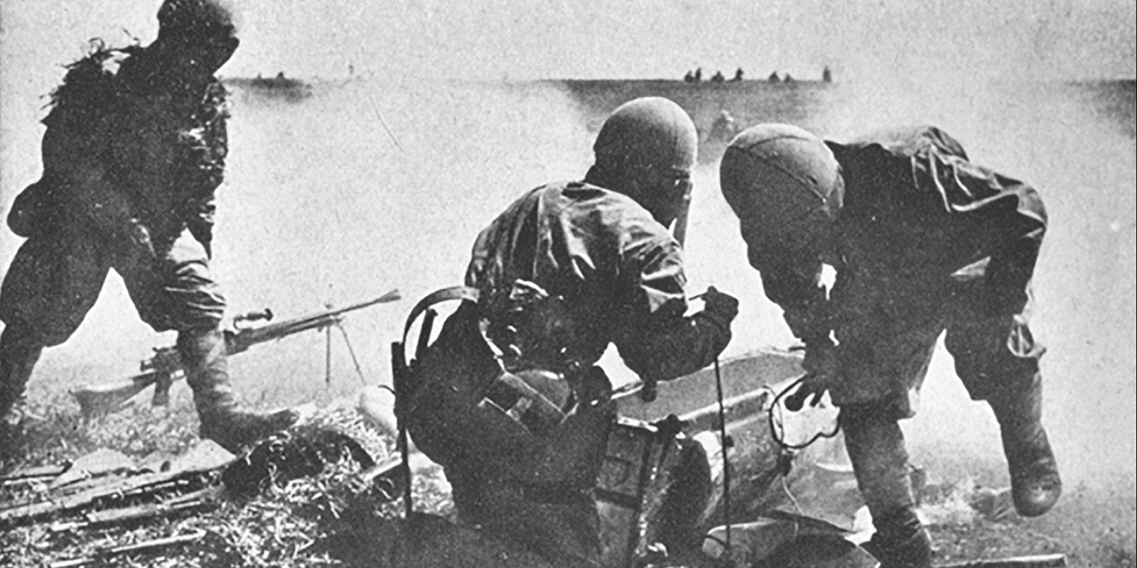 Японские воздушные десантники во время боя за аэродром в районе г. Палембанг.