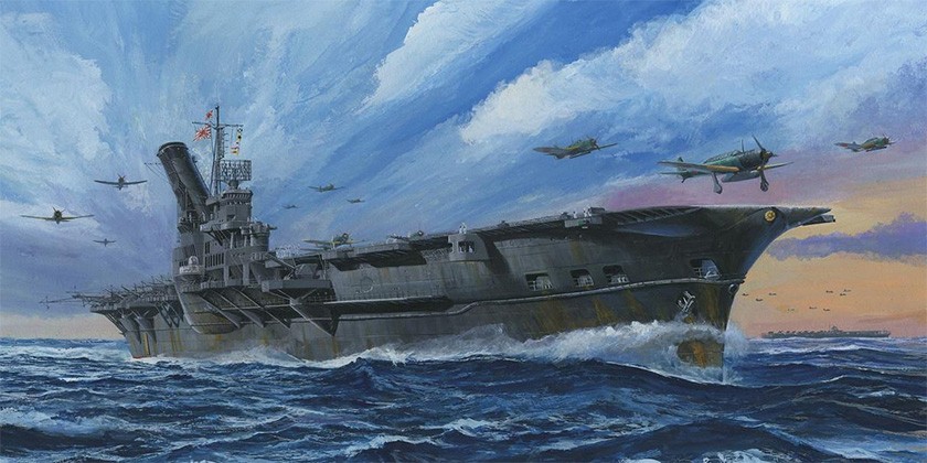 Как и на «дракончиках», нижний ярус традиционного для японцев двухъярусного ангара был интегрирован в корпус корабля. Увеличение размера авианосца позволило нарастить авиагруппу, что стала даже больше, чем на огромных «Акаги» и «Кага» – 84 машины. Да и зенитное вооружение было помощней – к шестнадцати 127-мм универсалкам добавилось 36 стволов 25-мм зенитных автоматов в новейших строенных установках. И всё это удалось запихать всего в 25 675 тонн стандартного водоизмещения – но всё равно на тот момент это были самые крупные авианосцы специальной постройки в мире.