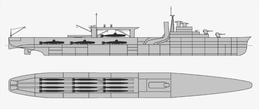 Японцы прекрасно понимали, что завалить своих противников количеством они не смогут, отсюда их известная любовь к различным вундервафлям. В частности, они возлагали большие надежды на свои суперсекретные крохотные подводные лодки с парой торпед каждая. Которые весёлой дружною толпой должны были атаковать не что-нибудь, а линейные силы супостата, причём в ходе «генерального сражения». Но для этого их требуется туда доставить и быстро спустить под воду, соответственно, нужны специальные носители, «корабли-кенгуру».