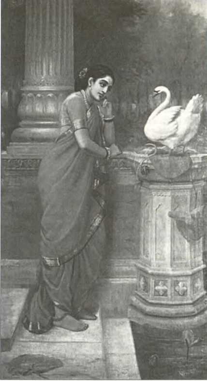 Дамаянти и лебедь. Сцена из «Махабхараты». Художник Раджа Рави Варма