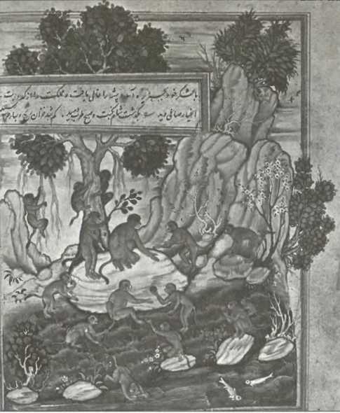 Услыхал Никитин много интересных рассказов и про обезьян: «А обезьяны-то те живуть по лесу, да у них есть князь обезьяньскый, да ходить ратию своею, да кто их заимаеть и они ся жалують князю своему, и он посылает на того свою рать, а они пришед на град и дворы разволяють и людей побьють. А рати их, сказывають, велми много, и языкы их есть свои, а детей родять много; да которой родится не в отца, не в матерь, ини тех мечють по дорогам; ины госдустанци тех имають да учать их всякому рукоделью, а иных продають ночи, чтобы взад не знали побежати, а иных учат базы миканет» (правильно: «базл микунед» – «играть и плясать»).