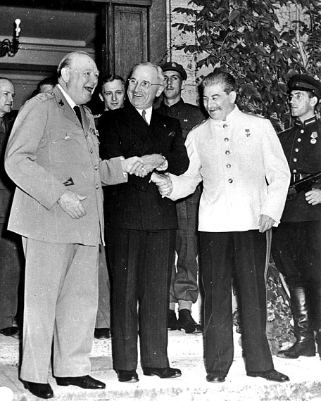 У. Черчиль, Г. Трумен и И.В. Сталин на конференции в Потсдаме. 1945 г.