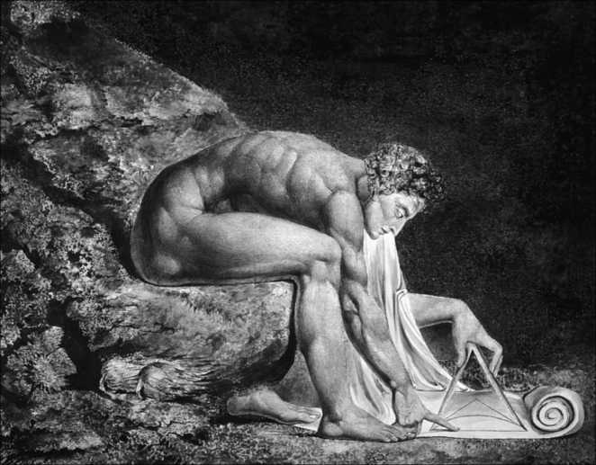 Подчеркивая интерес Ньютона к теологическим изысканиям, английский художник Уильям Блейк изобразил его в образе божественного геометра. 1795 г.