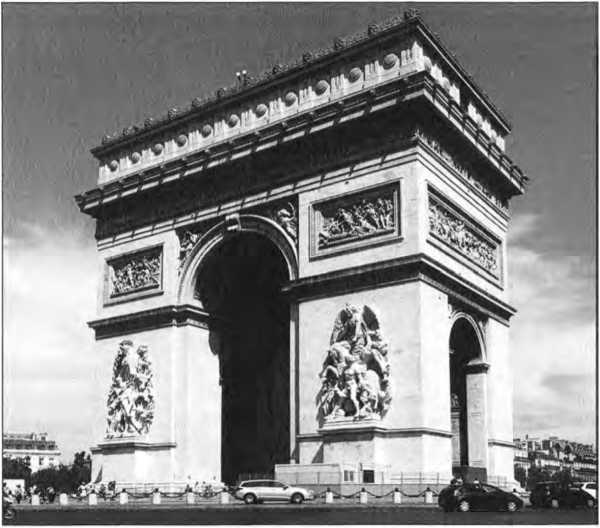 Этот важнейший монумент так называемой исторической оси Парижа – памятников и знаменитых улиц, протянувшихся от внутреннего двора Лувра до предместьев Парижа – был спроектирован в 1806 г. Жаном Шальгреном. Арка украшена барельефами, изображающими обнаженных французских юношей рядом с бородатыми германскими воинами в кольчугах. Этот монумент до Первой мировой войны являлся олицетворением национальной памяти и торжества националистической идеи.
