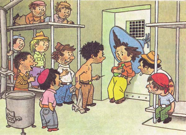 В каталажку! коротко приказал Мигль, махнув рукой в сторону Незнайки.