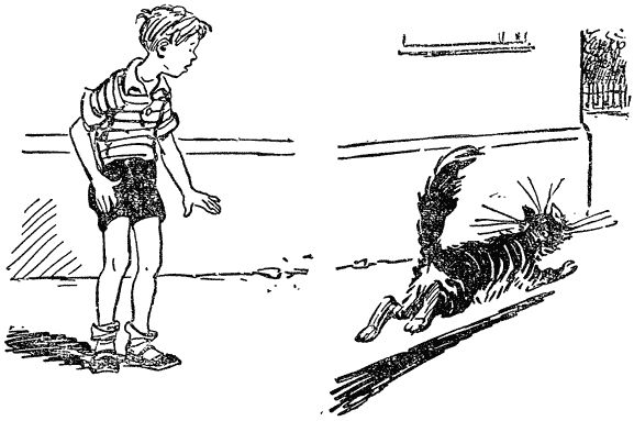 Это действительно испугало кошку, но, вместо того чтоб бежать назад, она бросилась через дорогу и скрылась за воротами дома на противоположной стороне улицы.