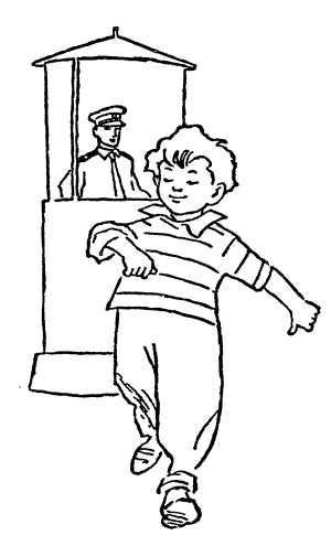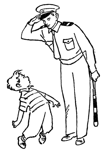 Алик поднял голову, увидел милиционера – и бегом от него. Только недалеко убежал. Его быстро поймали и держат, чтобы не забежал ещё куда-нибудь. А он кричит: