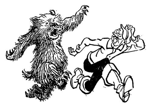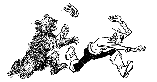 – Я раз тоже в лесу напугался медведя. Только это летом было. Пошёл я однажды в лес, а ружьё дома забыл. Вдруг навстречу медведь. Я от него бежать. А он за мной. Я бегу быстро, ну, а медведь ещё быстрей. Слышу, уже сопит за моей спиной. Я обернулся, снял с головы шапку и бросил ему. Медведь на минутку остановился, обнюхал шапку и опять за мной. Чувствую – опять настигает. А до дому ещё далеко. Снял я на ходу куртку и бросил медведю.