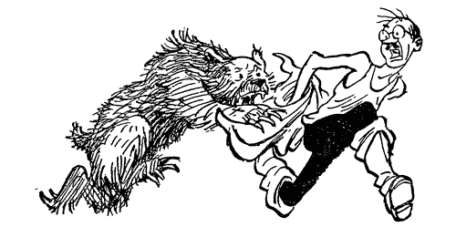 К вечеру, однако, ещё один волк пришёл. И стали они меня вдвоём караулить. Один волк спит, а другой стережёт, чтоб я не сбежал. Немного погодя пришёл третий волк. Потом ещё и ещё. И собралась под деревом целая волчья стая. Сидят все да зубами щёлкают на меня. Ждут, когда я свалюсь к ним сверху.