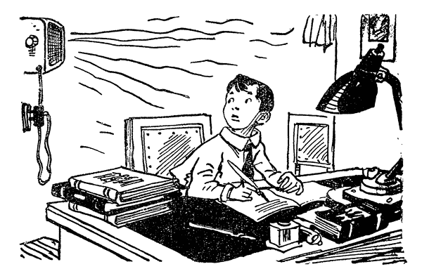 Он отрегулировал репродуктор, чтоб было погромче, и сел за стол.