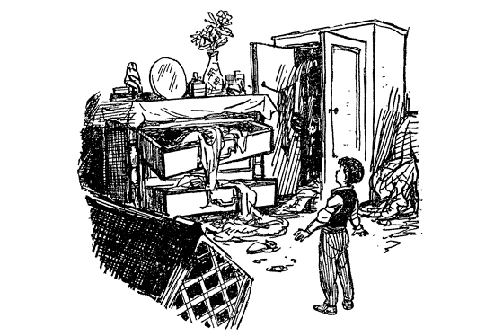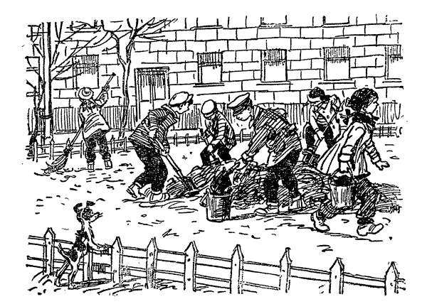 Мы стали таскать воду вёдрами из кухни шестой квартиры, но нас скоро оттуда прогнали: сказали, что мы нанесли им грязи. А какая там грязь, когда во дворе никакой грязи не было! Стали мы таскать воду из первой квартиры, но нас и оттуда выгнали. Мы пошли в четвёртую, нас стали и оттуда гнать.