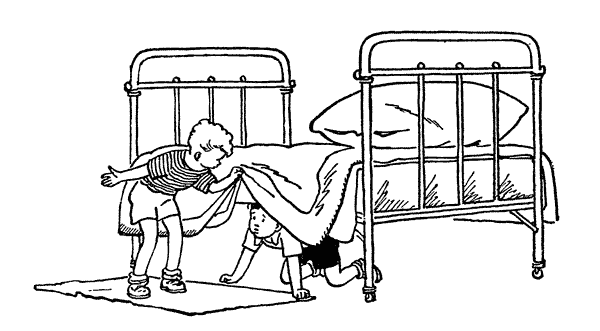 Витя и Славик пошли во двор и стали прятаться от Бобика. Бобик хорошо умел в прятки играть, только глаза зажмуривать не умел.