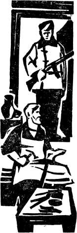 Низкий стол, заваленный обрывками кож, гвоздями, колодками, стоял около окна. Я снял сапог. Михайло принялся за дело. Он не спрашивал меня, кто я такой, откуда появился. Мы разговаривали о погоде, о разных пустяках. Но беседа шла натянуто. Казалось, Михайло и сам догадывался, что говорить нам надо не о погоде.