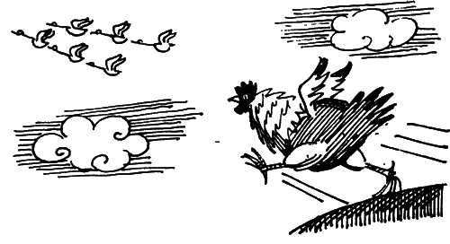 Этот зоологический феномен вызвал переполох в стане зоонауки. Говорят, двое кандидатов-орнитологов погнались за бройлерами на дельтапланах в надежде заполучить материал для докторской, но их постигла неудача. Догнать стаю не удалось. Она шла стремительно и уверенно, единым сплоченным коллективом, и в ее дружном кудахтанье чувствовалась атмосфера товарищества и взаимовыручки.