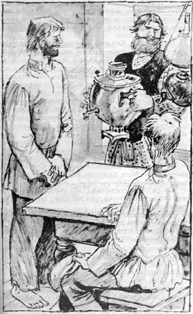 Петр Павлович принял гостей любезно и весело. Сейчас же поставил самовар и подал на стол сахар и баранки.