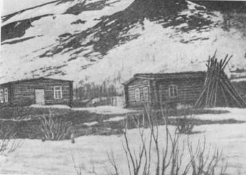 В Норильске все в порядке, работа идет своим чередом, К оз. Пясино из Таймырской тундры подкочевали нганасаны, В Часовне теперь есть фактория, куда они часто приезжают за продуктами. Заглядывают они и к нам. Среди них есть мои прошлогодние пясинские знакомые: Чута, Сундапте, Иван Горнок, который ждал нашу экспедицию на устье Пясины. Их очень интересует граммофон, который с многочисленными пластинками по случаю купила в Красноярске Е. И. Урванцева, Захотелось им побывать и на штольне, Пошли все вместе, но, как только Клемантович для демонстрации зажег кусок бикфордова шнура, он загорелся, шипя и разбрасывая искры, наши гости сломя голову кинулись бежать. Один упал, остальные пробежали через него, я потом все весело над ним смеялись. По приезде надо было решить, где поселить Батурина. В доме тесновато, да ему и не хотелось расставаться со своим помощником Зенковым, с которым зимовал вместе на Курейке. У нас стоит у Угольного ручья сруб с полом и потолком, но непрокопченный, предназначенный для новой бани. Батурин взялся привести его в жилой вид и там поселяться. Мы же пока будем пользоваться старой баней по-черному.