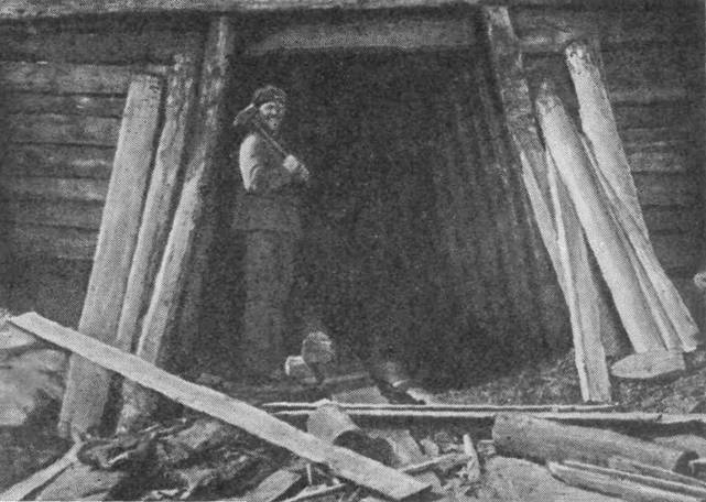 Отдохнувши, на другой день отправились на гору выбирать место для штольни. Кайлы и лопаты имелись на складе от прошлой экспедиции, так же как сухарь, сушка крупы, завезенные еще зимой дудинским кооперативом. Первую штольню решили заложить на нижнюю, более крупную шлиру. При расчистке площадки за шляпой из бурых известняков пошла, как говорят горняки, «сыпучка» – дресва из отдельных минеральных зерен, ранее в свежем виде сцементированных в монолитную массу. По мере углубления стал чувствоваться резкий запах сернистого газа вследствие окисления серы в сернистые соединения. На другой день дошли до подошвы рудного тела, которое здесь выражено нерезко, с постепенным переходом во вмещающий диабаз. Так как общее падение рудного тела и его подошвы идет на юг, то, заложивши здесь штольню, постепенно пройдем все рудное тело до кровли, чтобы выяснить его строение. На том и порешили. Забили колышки на месте закладки, где станет основной устьевой оклад, пожали друг другу руки, пожелали удачи, назвав эту штольню «Геолком». Леса в штабеле на площадке внизу имеется еще достаточно, израсходовали прошлый год не более половины. Но предстоит тяжелая работа по подноске на руках в гору заготовленного внизу крепежного материала. Потом для этой цели приспособим лебедку бурового станка, а пока что все придется таскать на себе.