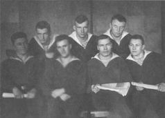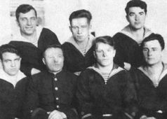 Мотористы подводной лодки «С-31»: верхний ряд – Антропцев, Гунин, Аракельян; нижний ряд – Кононец, Карпов, Индерякин, Яковлев. Севастополь. 1940 г.