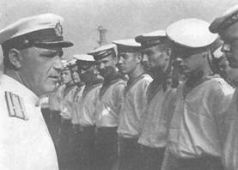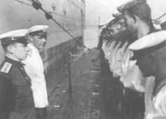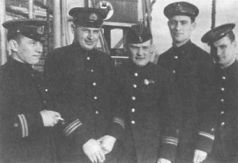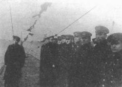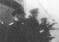Командир корабля капитан 3-го ранга Н.П. Белоруков, капитан 1-го ранга С.Е. Чурсин и начальник политического отдела капитан 3-го ранга П.Н. Замятин