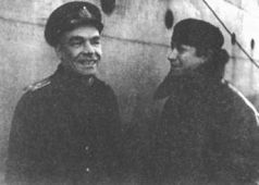 Н.П. Белоруков и командир бригады капитан 1-го ранга Андрей Васильевич Крестовский после возвращения подводной лодки. Декабрь 1943 г.