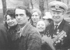 Контр-адмирал Н.П. Белоруков с внучками на праздновании 9 Мая. Москва. 1980 г.