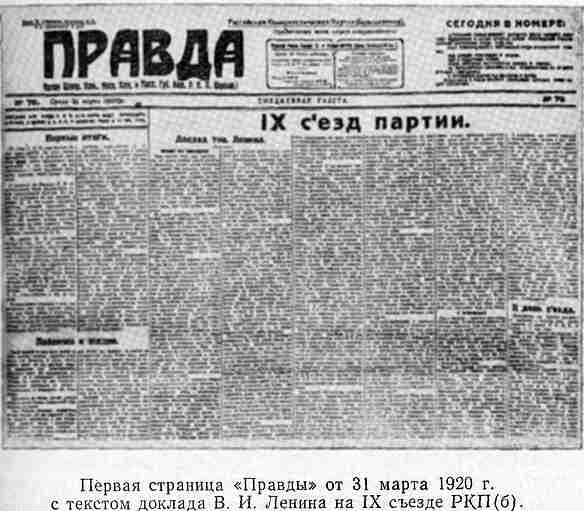 Новая обстановка требовала определения не только задач восстановления народного хозяйства, но и выработки развернутой программы социалистического строительства на более длительный период. Этому и был посвящен IX съезд Коммунистической партии, который происходил с 29 марта по 5 апреля 1920 г. в Москве.