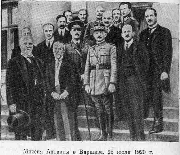 В ее состав вошли от Англии лорд д'Абернон и генерал Перси, от Франции – Жюссеран, бывший французский посол в США, и начальник штаба маршала Фоша генерал Вейган. 25 июля англо-французская миссия прибыла в Варшаву.