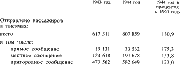 Значительно увеличилась погрузка на дорогах Юга и Запада, освобожденных от противника. На дорогах южного направления в 1944 году в среднем ежесуточно грузили 10 732 вагона против 7120 в 1943 году, на дорогах западного направления – соответственно 5340 и 1880 вагонов.