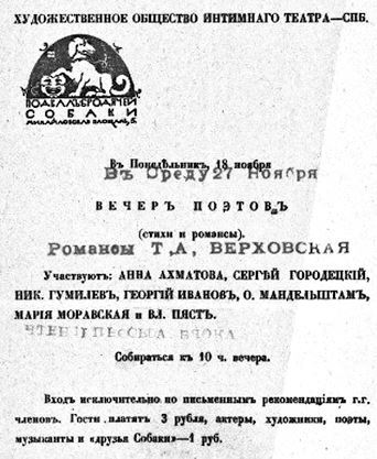 Публикации в прессе о поэтических вечерах в «Бродячей собаке»