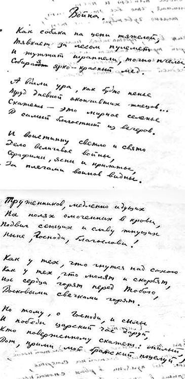 Автограф стихотворения «Война», посланный с фронта в Петроград
