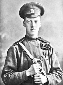 Николай Гумилёв. Фотография сделана в апреле 1915 года в Царском Селе во время лечения в госпитале. На куртке Гумилёва Георгиевский крест, полученный «за дело 20 ноября 1914 года».