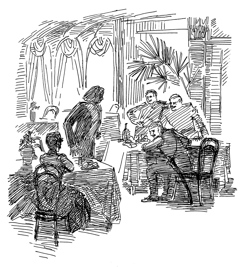 Алексей понял, что ему придется вмешаться. Пьяный соотечественник вызывал чувство стыда и омерзения. Но три офицера при оружии, подвыпившие… Для кельнеров они представляли силу, с которой страшно спорить. Известно, что пьяные вояки иногда пускали в ход шашки. Поэтому заступников для дамы можно было и не дождаться. А если и найдется смельчак, то он очень рискует.