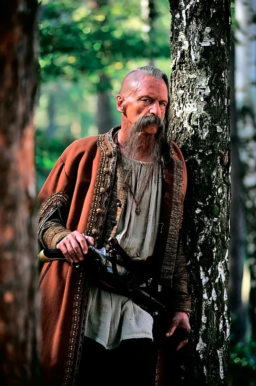 Сотник сидел почти неподвижен в своей светлице; та же самая безнадежная печаль, какую он встретил прежде на его лице, сохранялась в нем и доныне. Щеки его опали только гораздо более прежнего. Заметно было, что он очень мало употреблял пищи или, может быть, даже вовсе не касался ее. Необыкновенная бледность придавала ему какую-то каменную неподвижность.