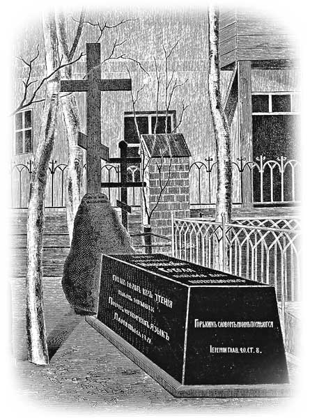 Могила Н. В. Гоголя в Свято-Даниловском монастыре, рисунок сделан В. А. Евдокимовым-Розанцовым. 1886 год