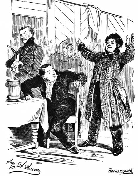 Чичиков узнал Ноздрева, того самого, с которым он вместе обедал у прокурора и который с ним в несколько минут сошелся на такую короткую ногу, что начал уже говорить ты, хотя, впрочем, он с своей стороны не подал к тому никакого повода.