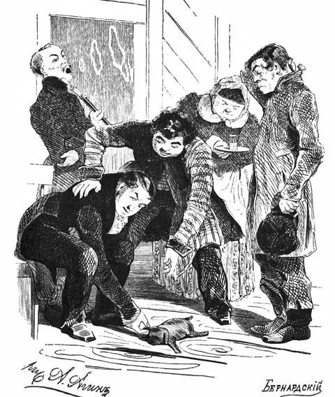 «Маловато, барин», сказала старуха, однако ж взяла деньги с благодарностью и еще побежала впопыхах отворять им дверь. Она была не в убытке, потому что запросила вчетверо против того, что? стоила водка.