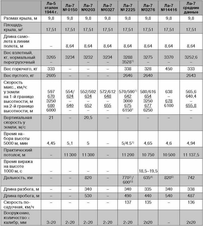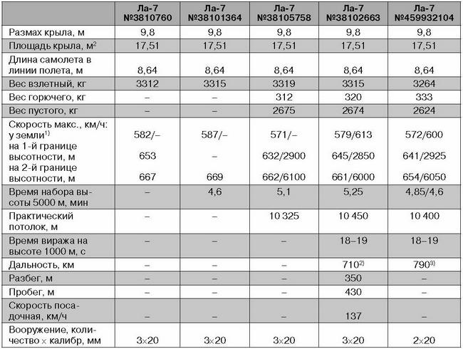 ОСНОВНЫЕ ДАННЫЕ ИСТРЕБИТЕЛЕЙ ЛА-7 ПРОИЗВОДСТВА ЗАВОДА № 21 С ДВИГАТЕЛЯМИ АШ-82ФН