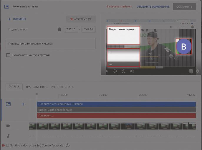 ● конечные заставки, то есть последние 20 секунд видео, когда вы можете поставить поверх него ссылки на плейлисты, конкретные ролики и большую иконку канала;
