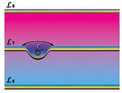 Если, в начале своей эволюции, звезда имела массу большую, чем десять солнечных, вторичное вырождение становится столь значительным, что вызывает смыкание пространств-вселенных с мерностями L7 и L6. При этом, материя из пространства с мерностью L7 начинает перетекать в пространство с мерностью L6. Образуется «чёрная дыра» (Рис. 2.4.5). Таким образом, «чёрные дыры» возникают в ходе эволюции звёзд, точнее «окончание жизни» звезды в нашем пространстве-вселенной приводит к рождению звезды в нижележащем пространстве-вселенной.