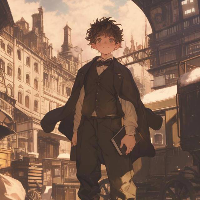 В столовую вошёл Осип Гурьев. Он выглядел немного взъерошенным, а в руках держал папку с бумагами. Рядом был его старший сын Лёня, мальчишка лет десяти с живым, любознательным взглядом и тёмно-каштановыми волосами, которые, казалось, никогда не хотели лежать ровно. Его лицо было усыпано веснушками, а большие зелёные глаза как у отца смотрели на мир с любопытством и лёгкой долей скепсиса. На парне был аккуратный, но слегка поношенный костюм из тёмно-синего сукна, который явно был сшит на вырост. Рукава чуть длинноваты, а брюки слегка волочились по полу, но мальчик старался держаться с достоинством, как настоящий маленький джентльмен.